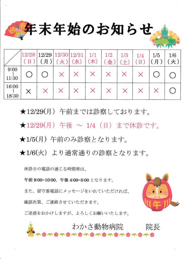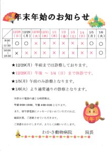 年末年始の休診日のお知らせ